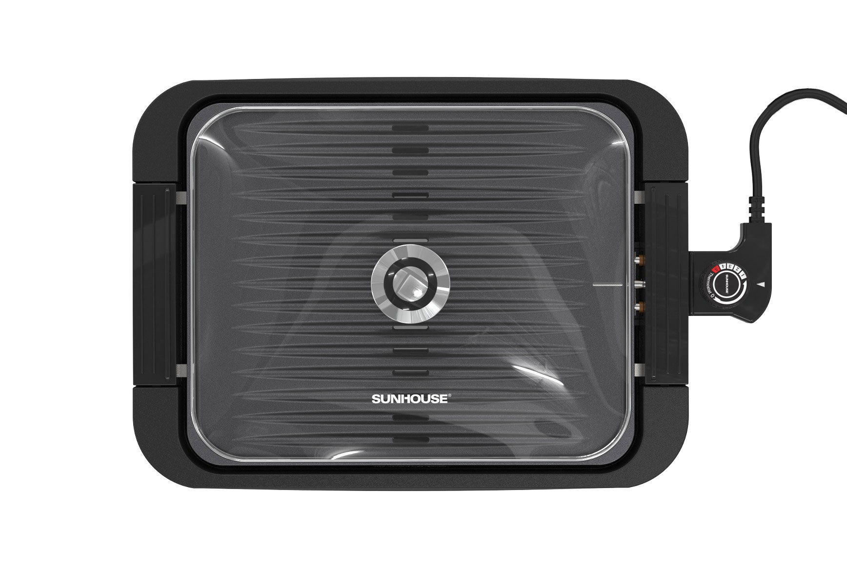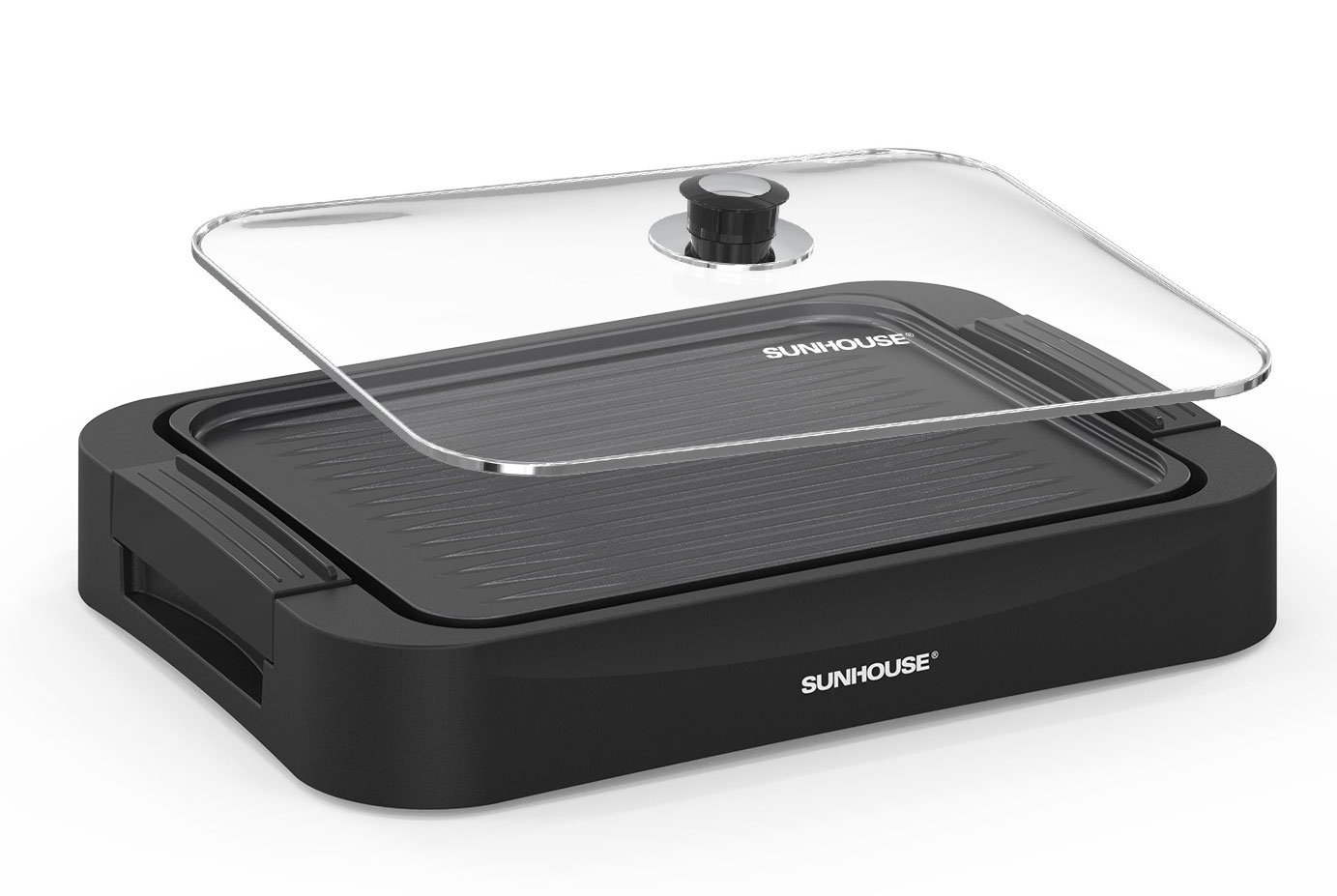 Thiết kế tay cầm cách nhiệt của bếp nướng Sunhouse 1700W bền bỉ giúp người dùng dễ dàng di chuyển hoặc mở nắp mà không lo bị nóng. Điều này tăng tính an toàn và tiện lợi, đặc biệt khi sử dụng trong các bữa tiệc nướng đông người.