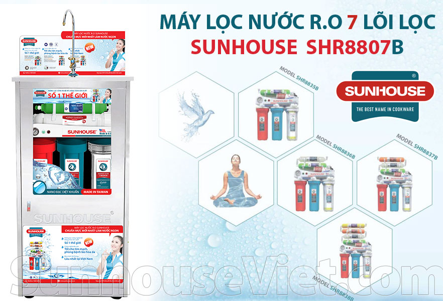 - Tên sản phẩm: Máy lọc nước R.O 7 lõi Sunhouse SHR8807B