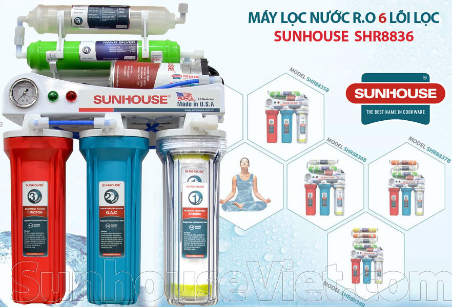 MÁY LỌC NƯỚC R.O 6 LÕI LỌC SUNHOUSE SHR8836