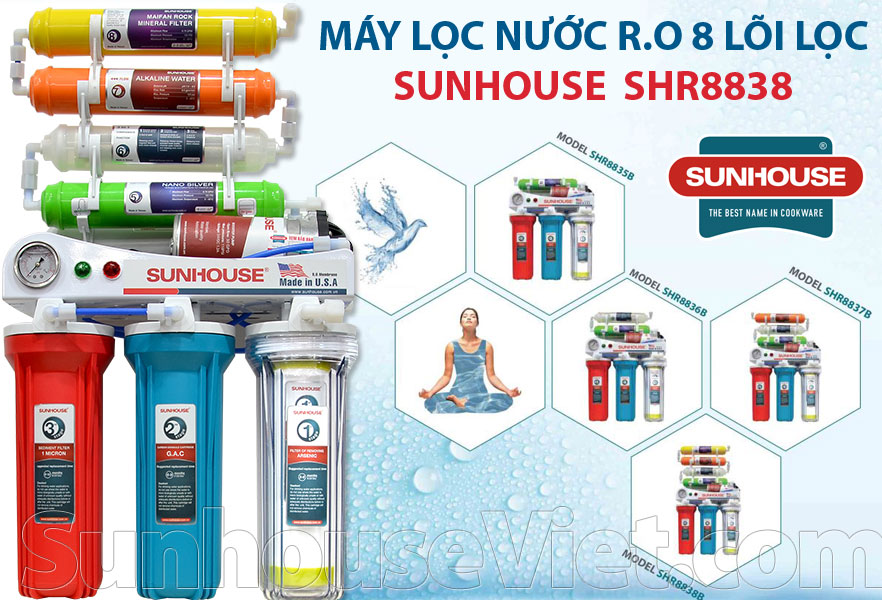 - Tên sản phẩm: Máy lọc nước R.O 8 lõi lọc Sunhouse SHR8838